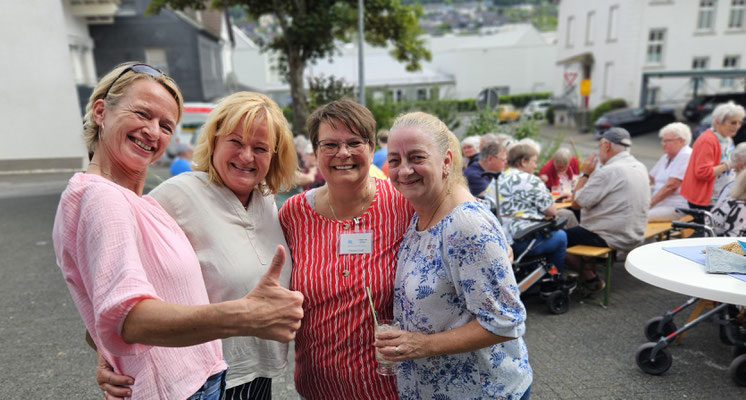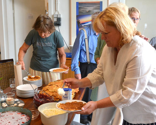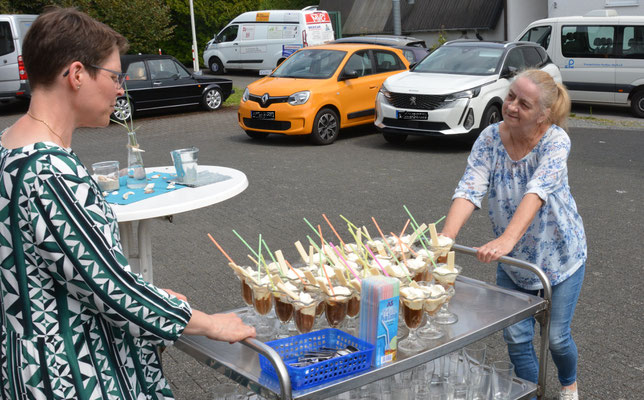 Eiscafé ausfahren, Kirschen und Sahne auf die Waffeln schaufeln und die Teller verteilen, Sommerbowle abfüllen und zu den Tischen bringen: Da war jede helfende Hand gefragt. Gemeinsam stellte das Team die Besucherinnen und Besucher zufrieden.