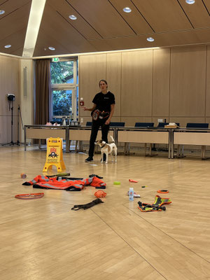 Bereitwillig wurden auch Fragen der Anwesenden von Julia Ashoff und Stefanie Knecht beantwortet. Zum Schluss zeigte Hündin Elsa, wie sie eine Person auffindet und dies durch Bellen anzeigt.